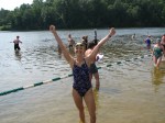 Now that I’ve confessed that sin, let me tell you about my beautiful dip in the lake yesterday morning. I couldn’t have asked for better weather or water conditions, with bright blue skies and the lake temperature just chilly enough to feel good once you’re swimming.This was my first time at a lake swim, with my previous open-water experience — plus a few disasters forced on me by a high-school swim coach — and the lack of current and waves almost made it feel like swimming in a pool.