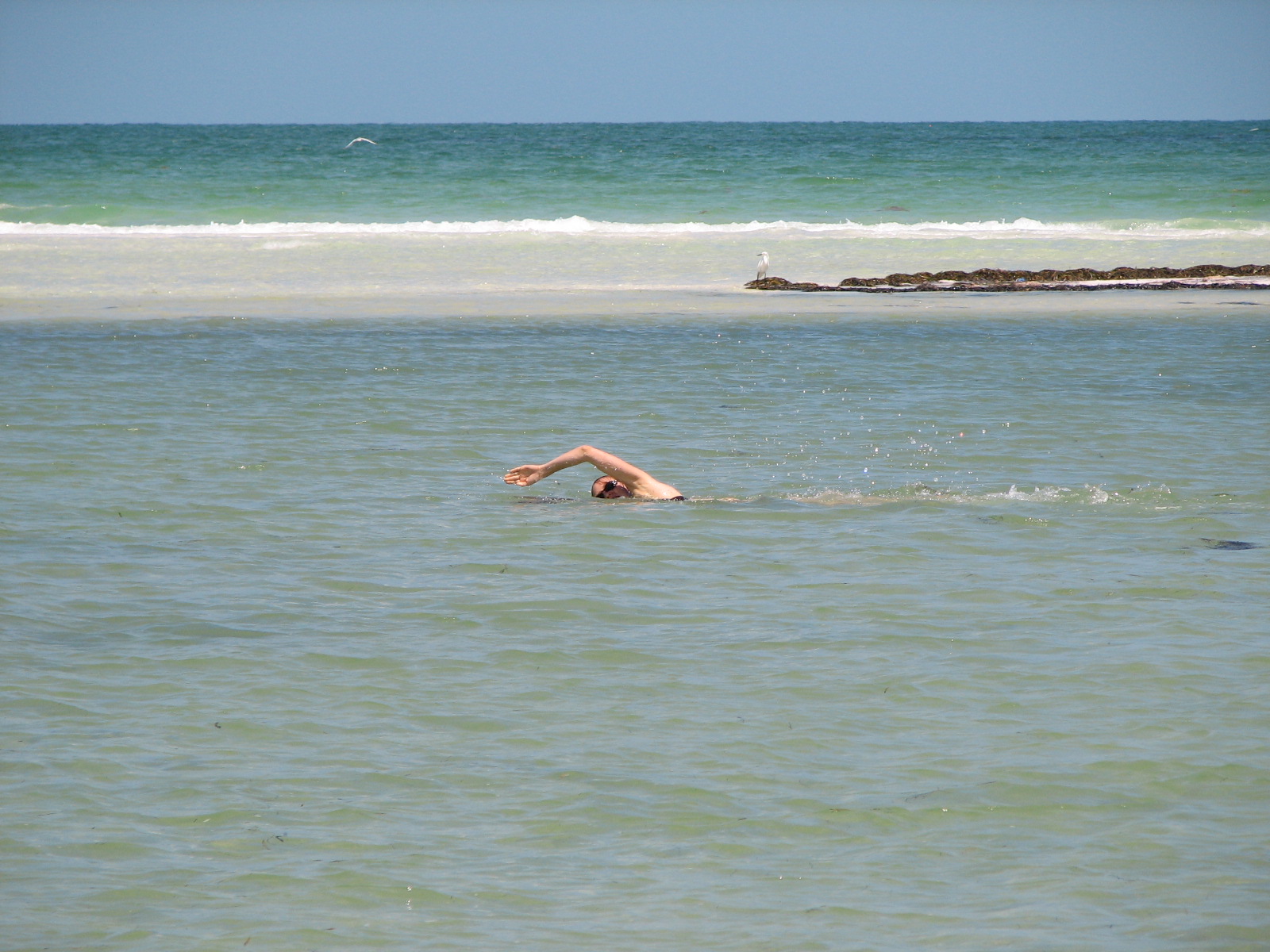 My "workout" one day in Florida consisted of a few laps along the shore of an island in the Gulf.
