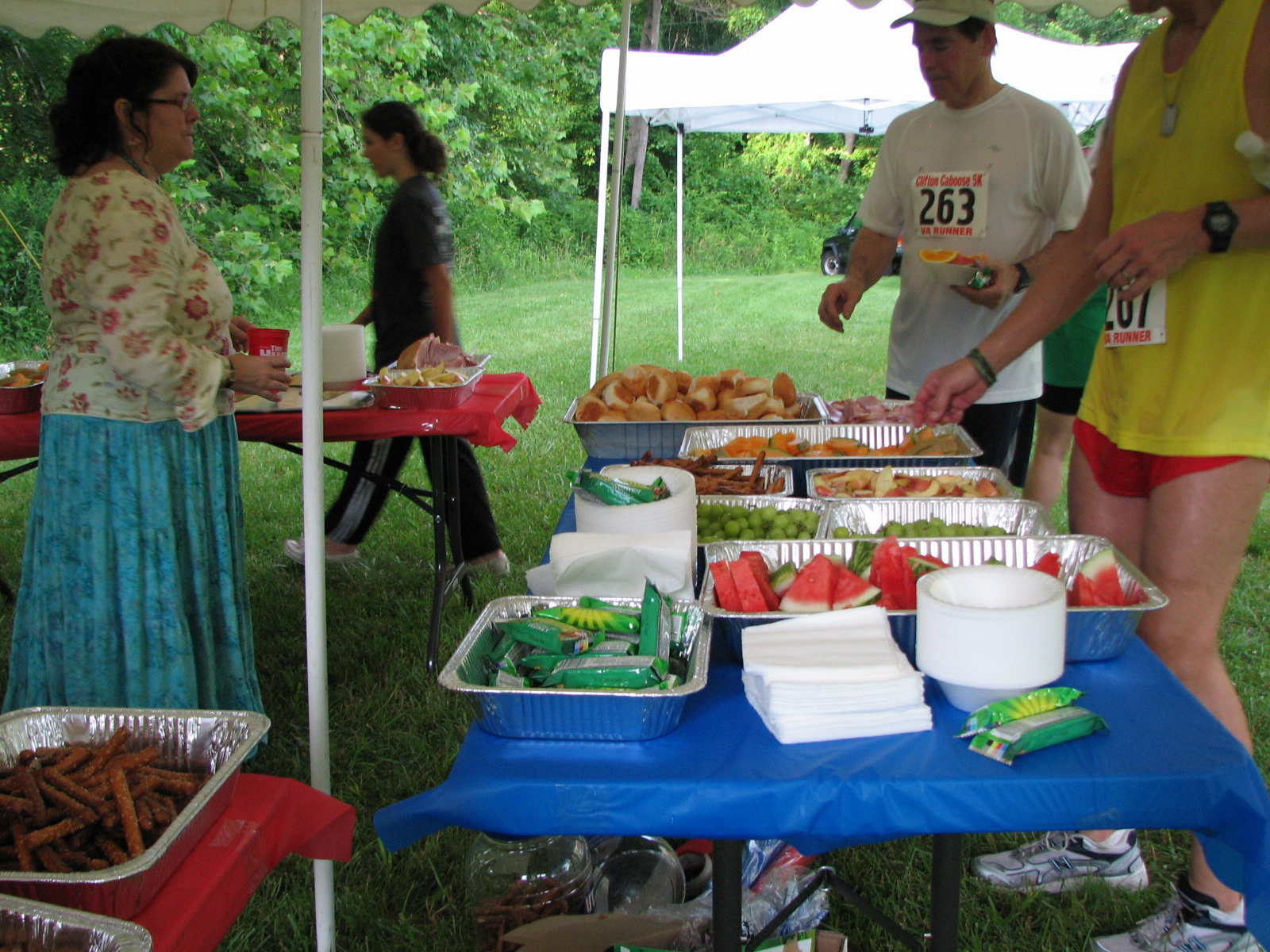 The best part of the race is the charming post-race party back at the big red barn. Post-race munchies mostly consisted of vats of fresh fruit, which I loaded up on. Steve headed for the keg of Sierra Nevada—not bad for free beer offerings, no?
