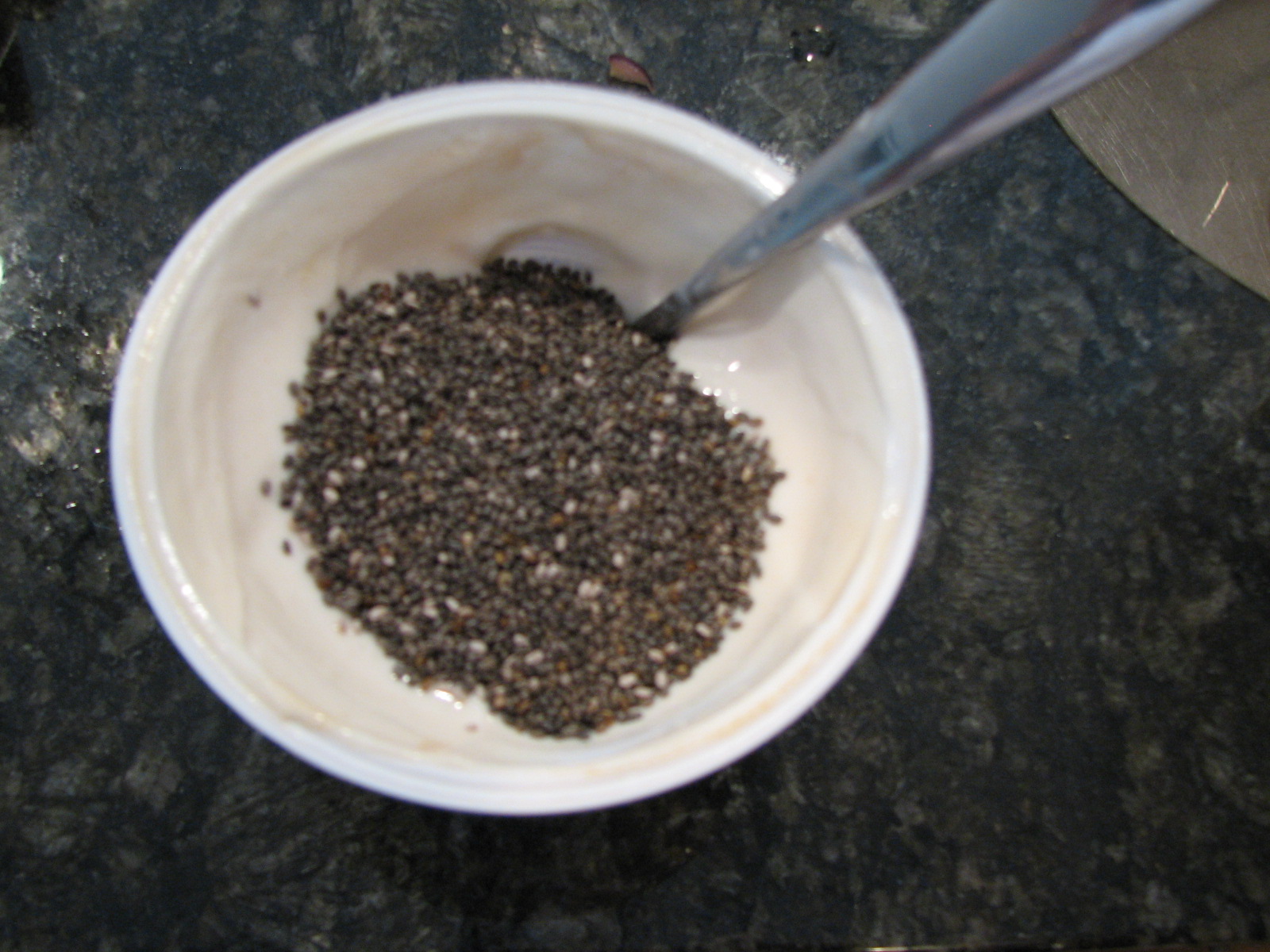 But as horrified as I was by chia fresca, I wasn’t going to give up on chia seeds. Weil recommends sprinkling them a salad or mixing them into yogurt, and I tried the latter a few hours before my run on Tuesday.