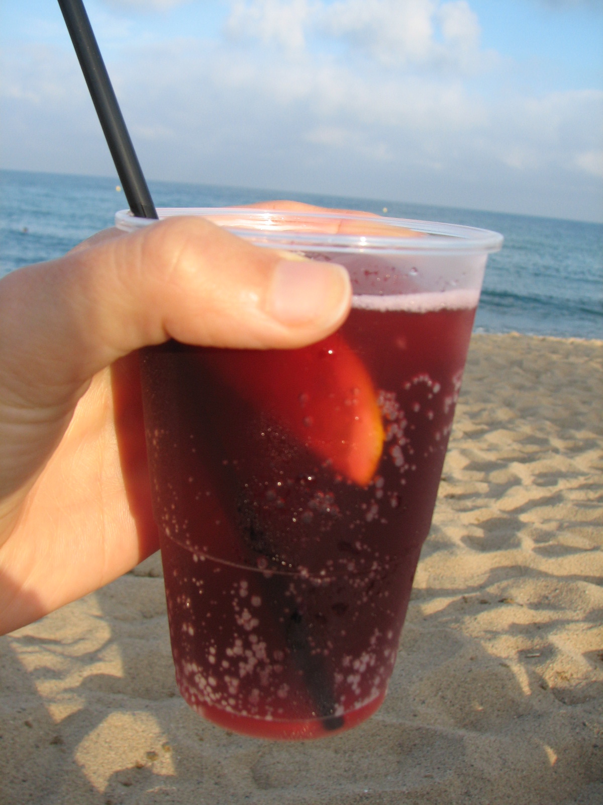 … and off a beautiful beach in Barcelona, where my post-swim fuel was a glass of sangria.