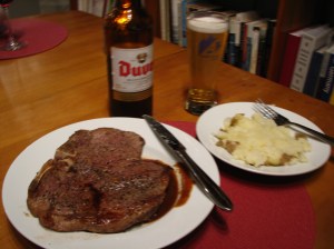 Steve and I upped the ante to celebrate this one, with a yummy pasta dish and wine for me …