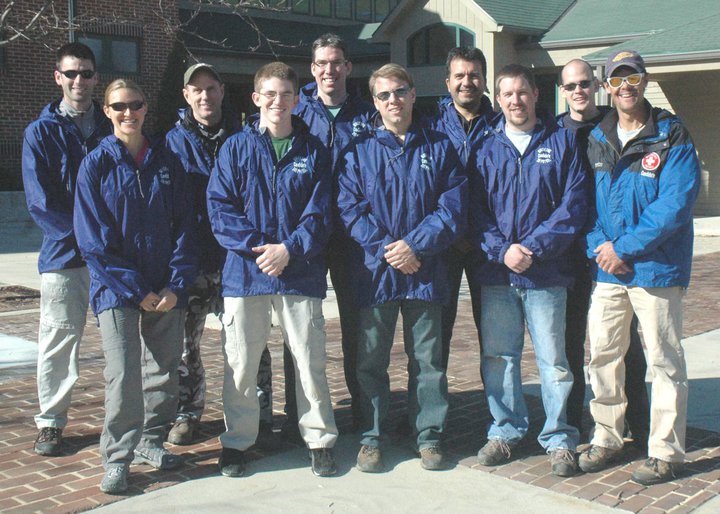 My ski-patrol candidate class, wearing the absurd blue jackets I'll be stuck in just a *little* bit longer than everyone else.