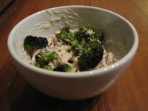 I’m usually not all about the cornstarch, but it works well here. Also, it’s a little too goopy for me to serve to guests. But even with loads of broccoli mixed in (see below—yum!), it tastes like the height of decadence during those home-alone-with-a-book nights. I’ve amended this a bit to suit a smaller batch, and a stronger taste for cheese and garlic.