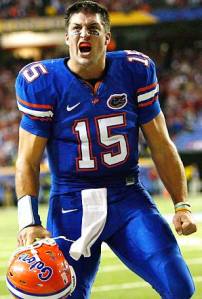 I have a bit of a love-hate relationship with Tim Tebow. I spent four years of my career as a reporter at The Gainesville Sun, where the University of Florida quarterback’s every move made the news. This isn’t a dis on The Sun, which is a great paper, but merely an observation about the population—when Tim Tebow sneezes, Gainesville wants to know about it. An example of Gator fans’ adoration for Tebow: A UF alum friend of mine lists Tebow as an honorary groomsman in her upcoming wedding.
