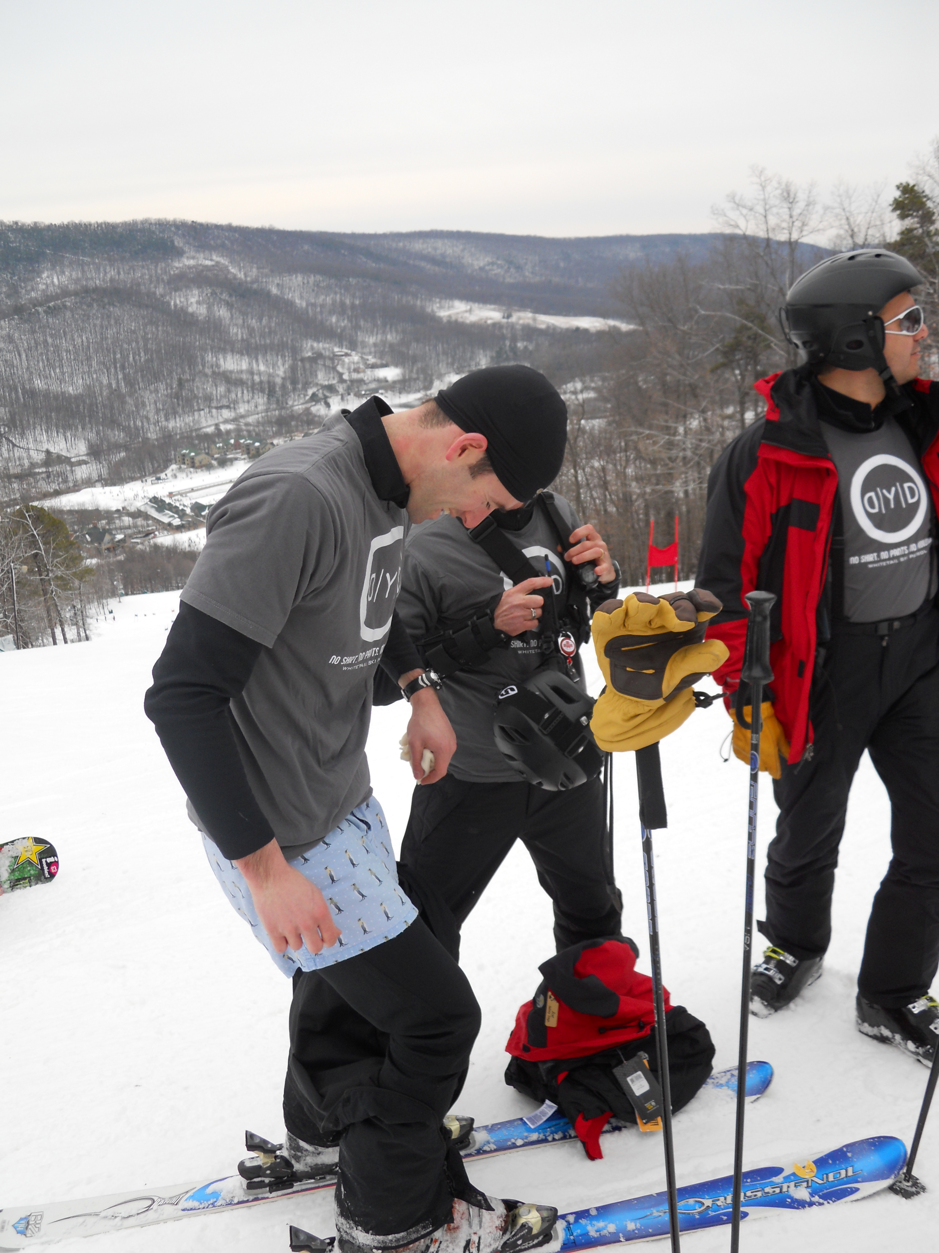 Since our class motto is “Drop Your Drawers,” the skiers raced in long underwear and boxers.