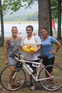 • The swim leg of the triathlon is even more of a paradox than I’d previously realized. From a swimmer’s perspective, it is SO SHORT! When my teammates and I figured out how long each of our legs would be, I almost felt embarrassed that my contribution was a piddly 25-minute swim. Other swimmers at the start agreed, and we joked about how lazy and/or brilliant we were for choosing the short, easy part. But if you’re not a swimmer, a 1,500-meter swim through a lake can be truly terrifying. The only solution I can see: If any triathletes out there would like to outsource that portion of the race, I’m available for those services …