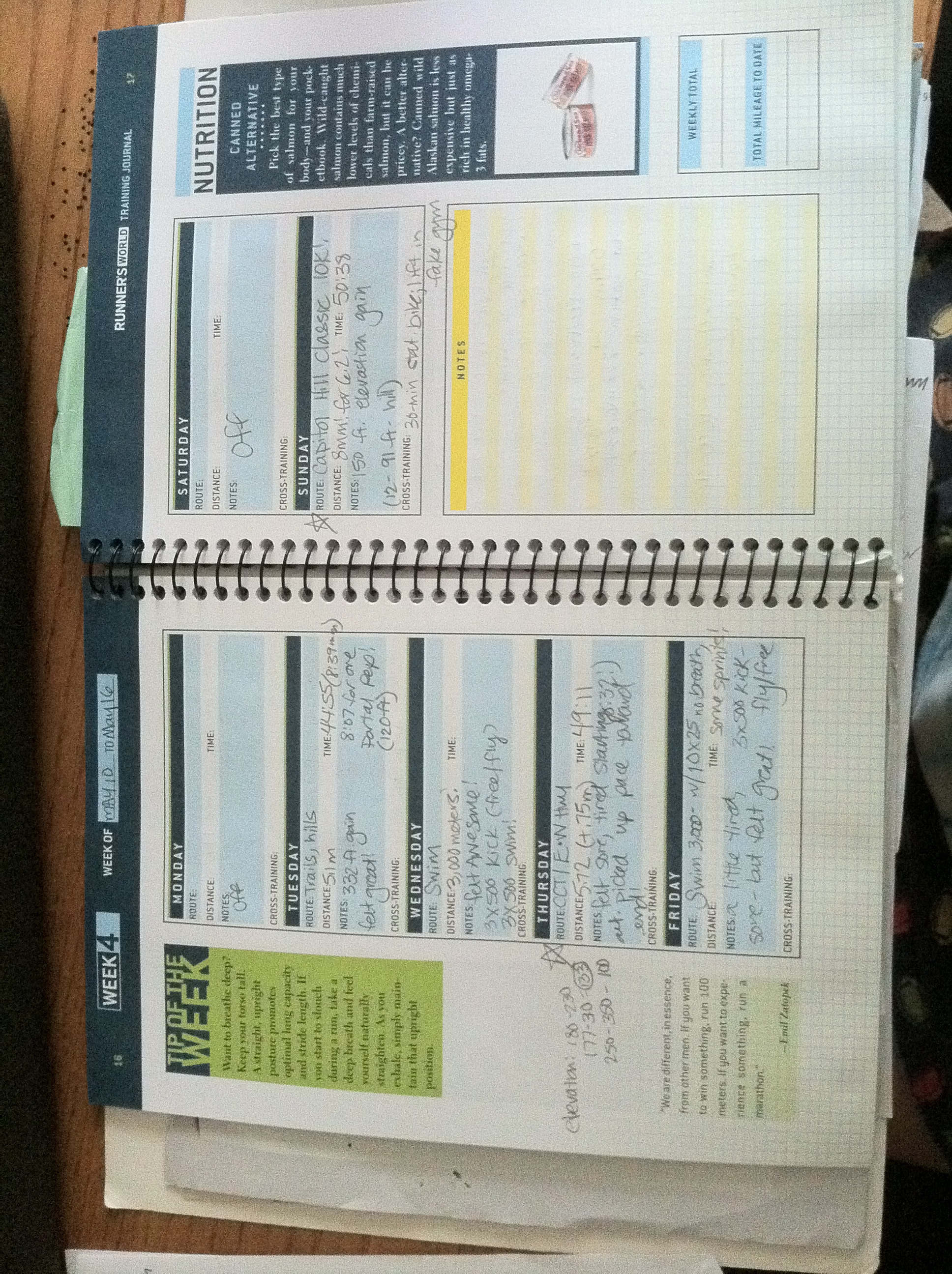 I’ll chart all of the above in my training log. I may even post the workouts on here, as I did back when I trained for the Virginia Beach Half Marathon in 2010. Back in 2010, my training log looked like this: