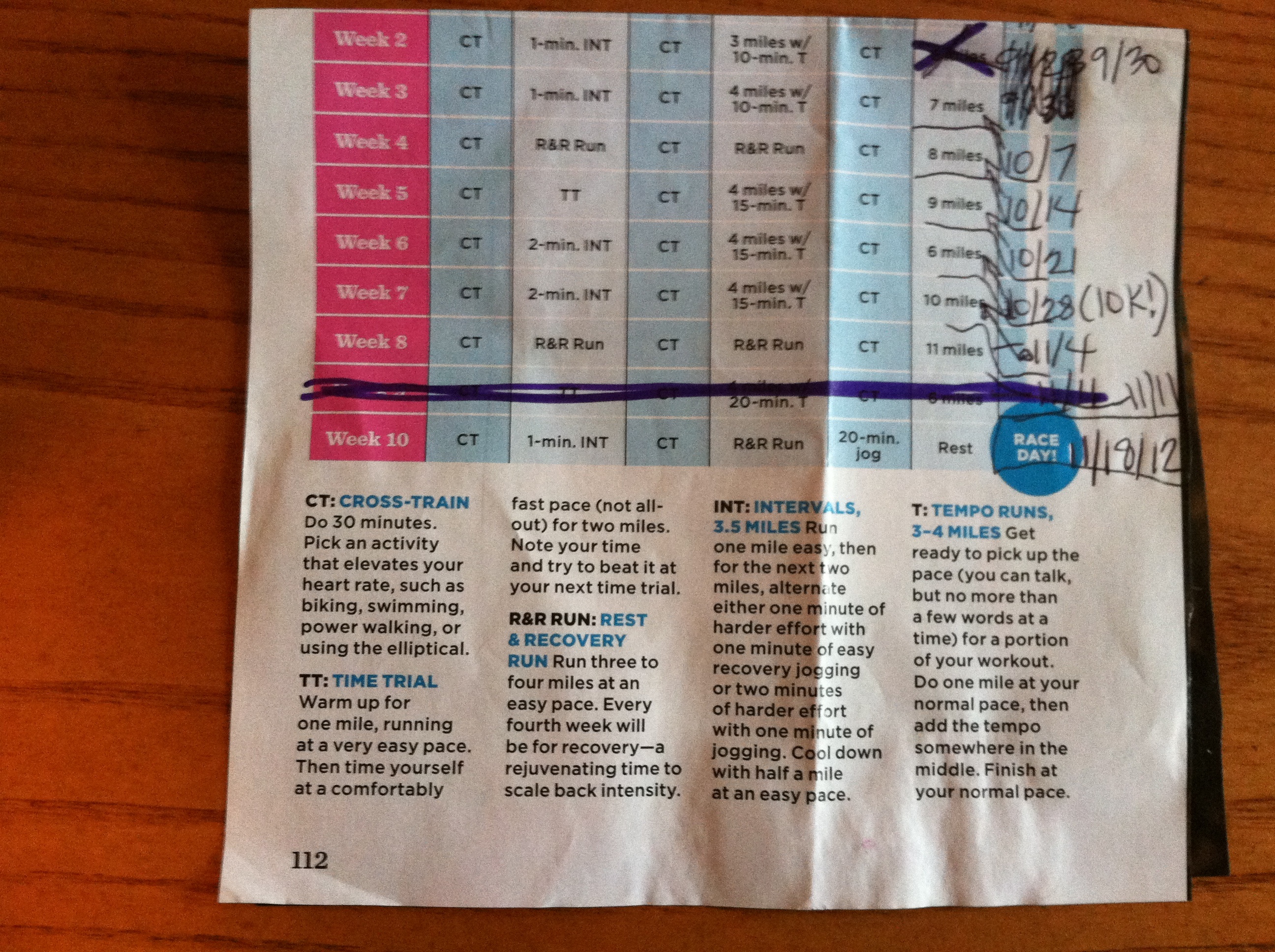 Just about a month ago, I plucked a training plan from a random magazine and got psyched up to train for the Philadelphia Half-Marathon.