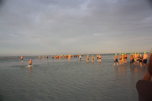 At about 7:30 a.m., a race official walked the 2.5 K swimmers out beyond the sandbar for the start.