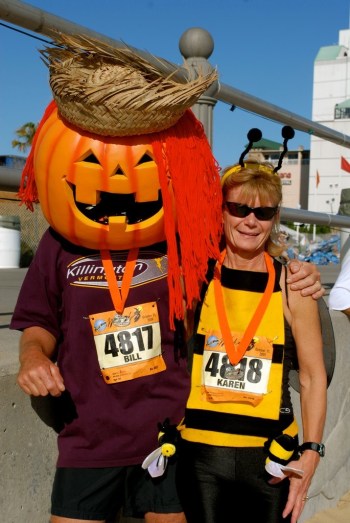 We arrive at the Virginia Beach Convention Center early, leaving the house at 6:30 a.m. to avoid traffic and long lines at the packet pickup. I pick up my bib, lucky No. 814, drop my stuff at the bag check, and entertain myself by watching the costume-contest judging while I wait for the 8 a.m. start.