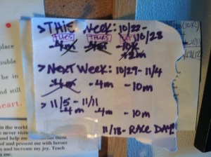The good news: I’m still on pace to complete my last-minute, rejiggered half-marathon training schedule: