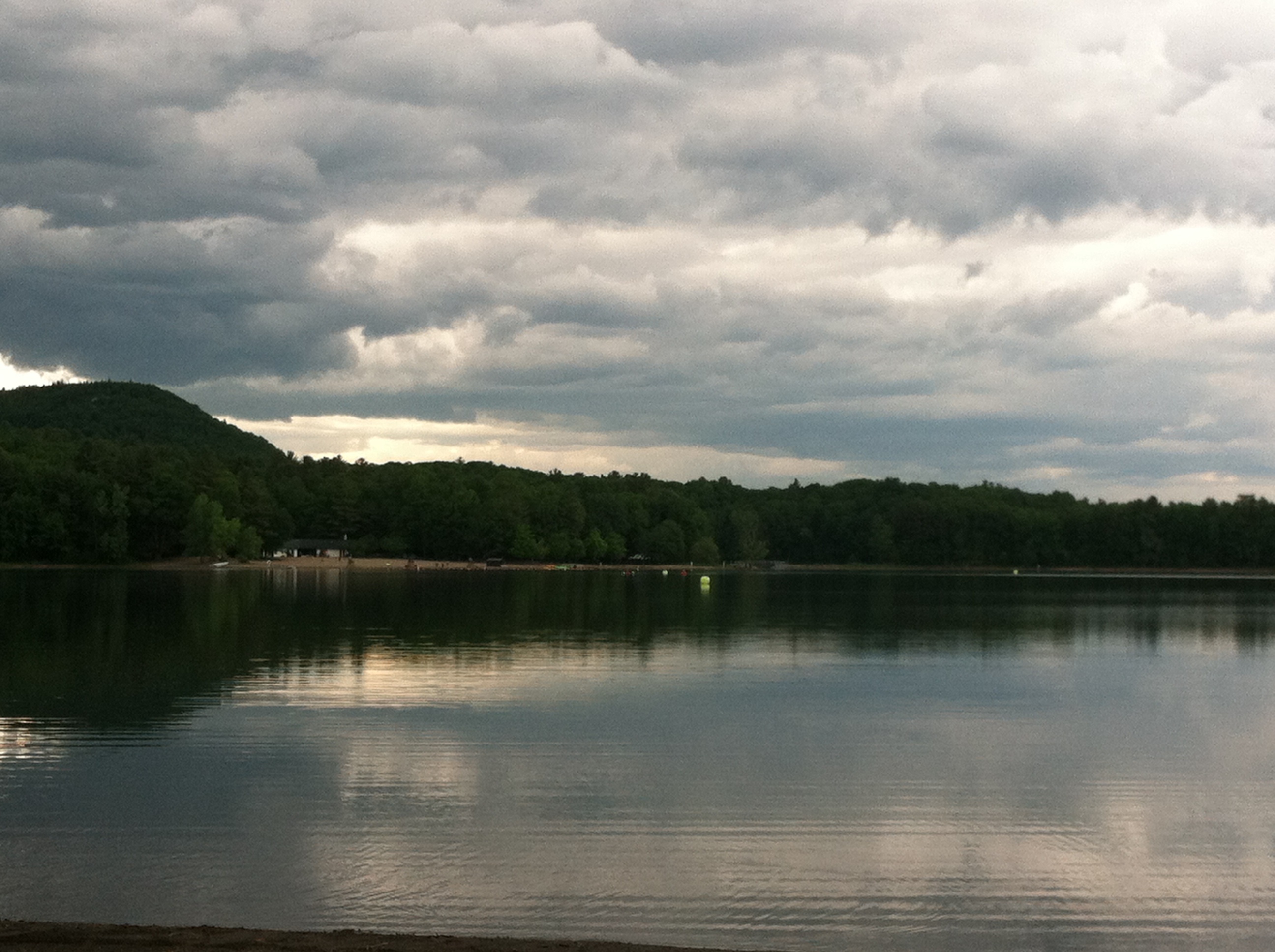 And a word about the race itself: I was supposed to be backpacking last weekend, so I prepared for the race as I would for a casual hiking trip: By undertaking a (not easy) lifting and rowing workout the afternoon before the race and by drinking two (not weak) margaritas post-workout. I drove up to the race, located about an hour north of Saratoga Springs, with a swimmer-friend from Saratoga. When we arrived, we both wondered aloud whether the dozen or so hard-core-looking swimmers gathered on the beach were as fast as they looked.
