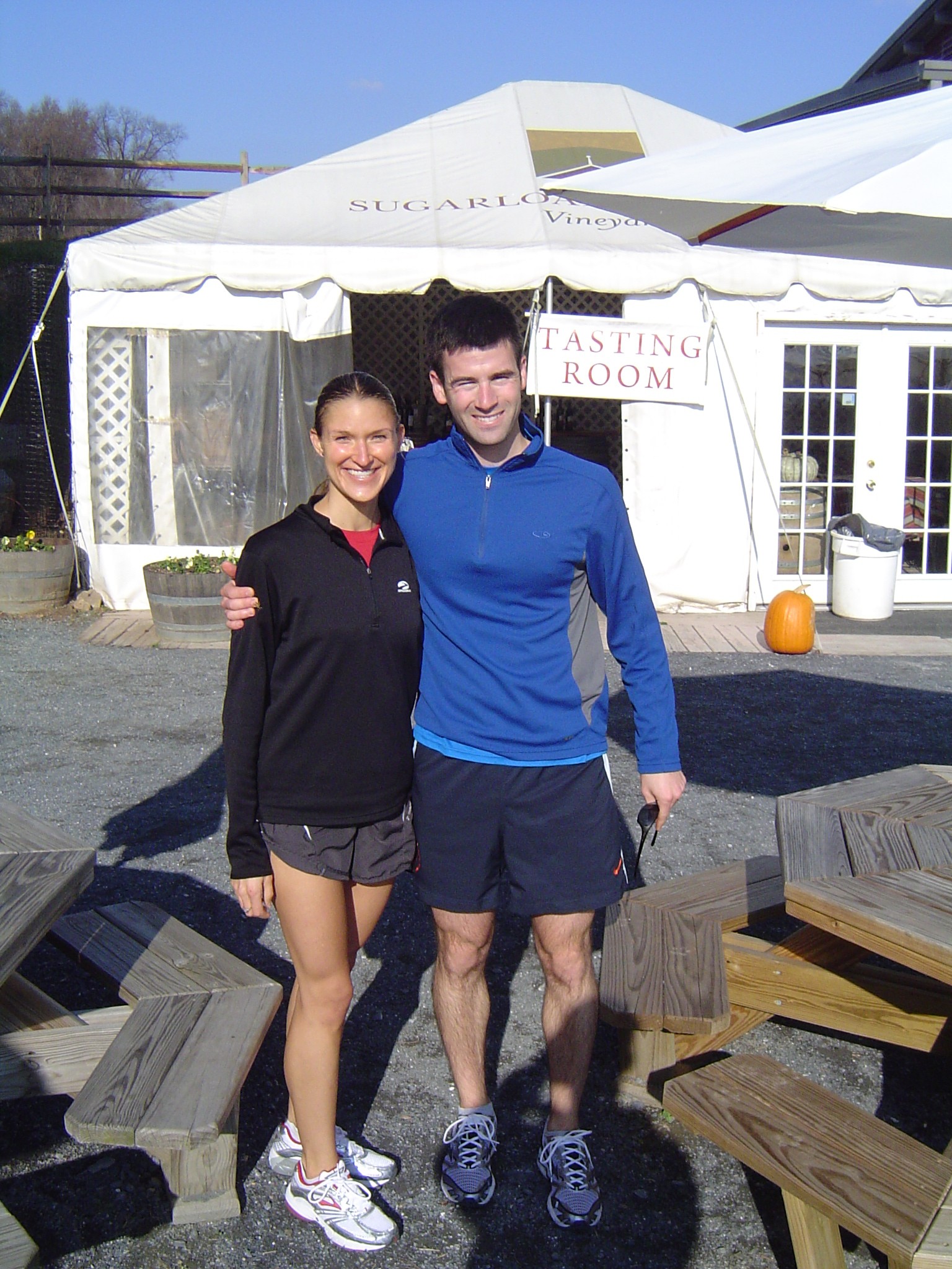 Our amazing trip yesterday to Sugarloaf Mountain, a lovely landmark less than an hour from our apartment in Silver Spring, Md. If there is a better way to spend a sunny fall Sunday than by running up and down a mountain a couple times (literally, a couple — it was so much fun, we ran the paved part twice!), then hitting up the vineyard at the bottom of the mountain for a wine tasting, I’m not sure what it is.