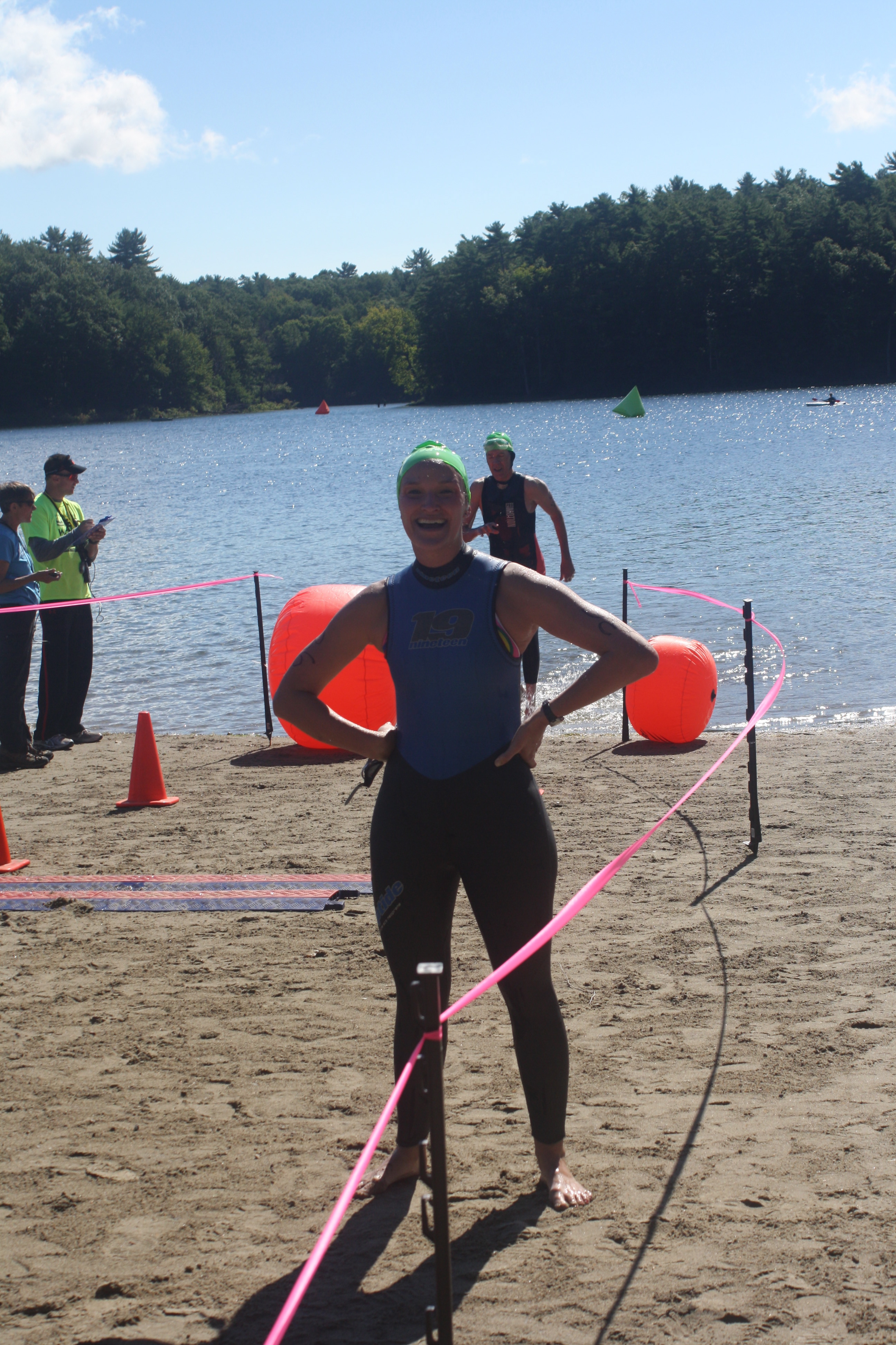 I had been eying past race results, wondering if I could be the first woman out of the water at this small, hometown race. I got that idea out of my head quickly once the race started, as three women zoomed to the front of the pack, which I almost immediately lost sight of. I’d been fighting a cold all week (forced taper, anyone?), and I spent the first 20 or 25 strokes wondering if this race was a bad idea.